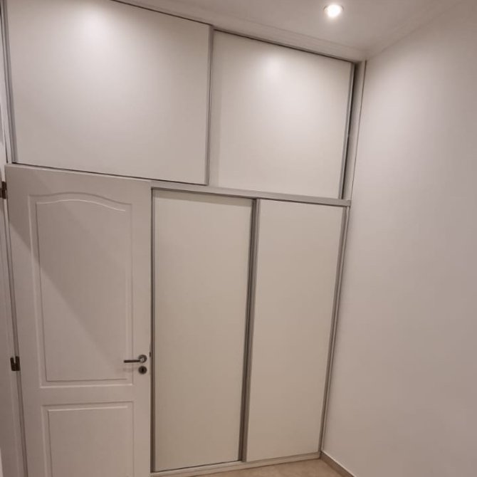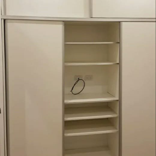 UN DORMITORIO CON PLACARD Y AIRE ACONDICIONADO FRÍO CALOR